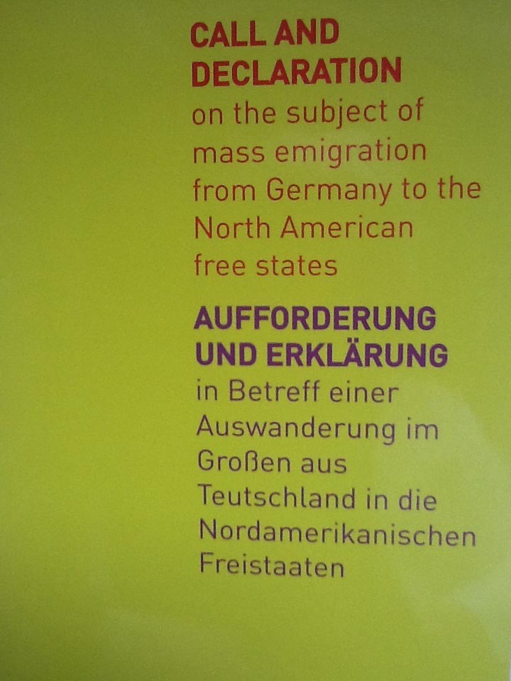 The “Utopia” book – published by Falkenberg Edition – is the first detailed depiction of the Giessen Emigration Society’s history from 1834 to accompany the exhibit. The book is written in German and English throughout and chronologically follows the history of the society from its homeland departure to its settlement in Missouri. Included are supplementary and extended texts by guest authors and the creators of the exhibit dealing with the politically motivated emigration of the 19th century. The book is in color throughout and its 352 pages contain large-format photos by Folker Winkelmann and offers numerous, largely unpublished, illustrations from archives and private collections. After the exhibit’s opening in November, 2013 the book also became available in the USA from the University of Chicago Press.