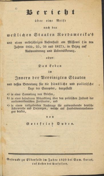 In 1829, some said Gottfried Duden’s Report on a Journey to the Western States of North America, in the years 1824, 25, 26 & 27 portrayed Missouri as a place similar to the Garden of Eden. He told of a place where food was abundant, where you were free to chose where you lived, who you married, and what you said. Freedom was the key word. You had the freedom, dearly fought for, to live a life only dreamed of in Germany at that time.