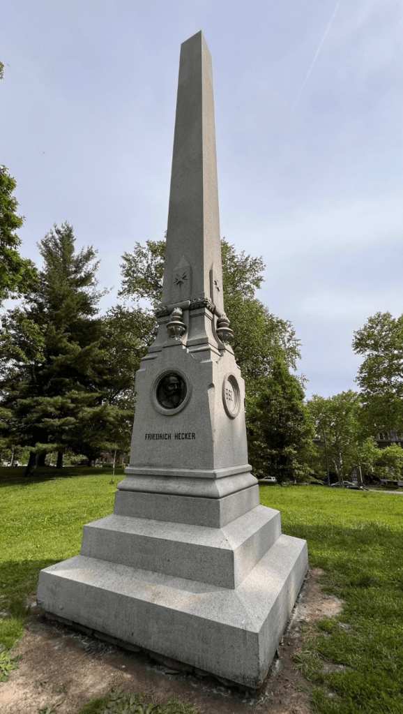 Hecker was a leader in his homeland of Baden, Germany during the 1848 Revolution. After emigrating to the United States, he first served in the Union Army as an enlisted man. He was quickly appointed an officer, leading two regiments to help defend and reunite his adopted country during the American Civil War.