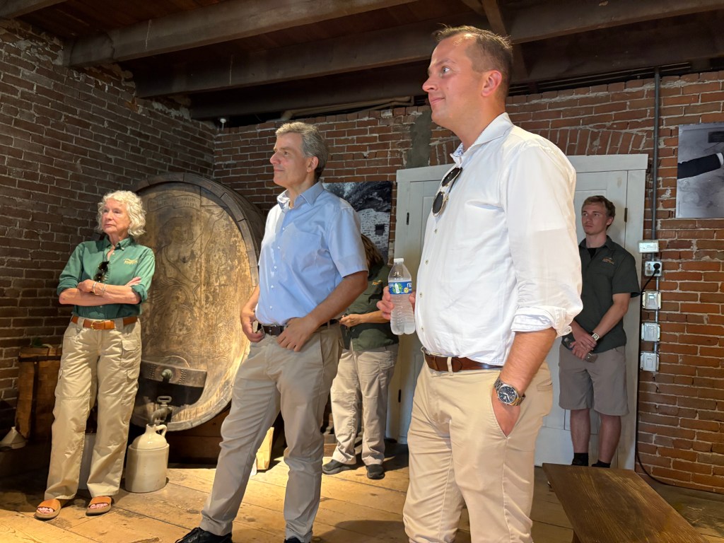 Recently Missouri enjoyed a visit from the German Consul Michael Ahrens from Chicago , Ambassador Metin Hakverdi from Germany and his staff. They toured the State with our own Honorary Consul Paul R. Obernuefemann and stopped by the State Historic Site in Hermann, Missouri. There they were able to meet with Dorris Keeven-Franke, Executive Director of Missouri Germans Consortium, Hermann Representatives, including Tammy Brueckerhoff Hermann’s Tourism Director, and the Staff of Deutschheim and enjoy an all too brief tour by Docent Derek VanBooven.
