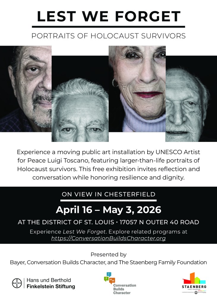 The Holocaust was the systematic, state-sponsored persecution and murder of six million Jews by the Nazi German regime and its allies and collaborators during the period from 1933 through 1945. Millions of others were targeted, including Roma and Sinti, people with disabilities, gay men, political dissidents, and members of other persecuted groups. As firsthand witnesses become fewer each year, public remembrance and education remain essential. LEST WE FORGET centers lived experience, placing human faces in everyday public spaces to foster reflection, empathy, and dialogue, while supporting awareness and continued learning. 2