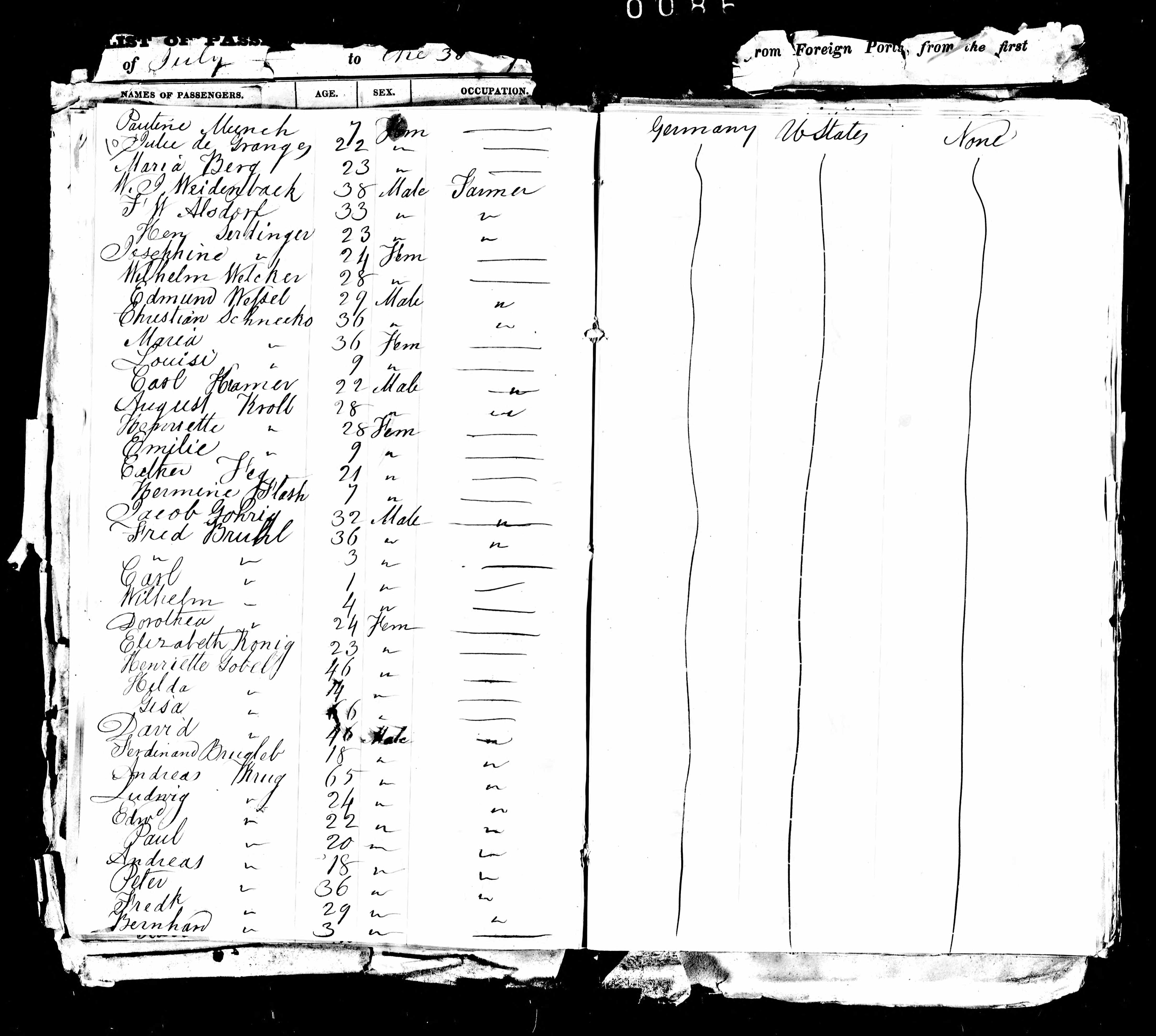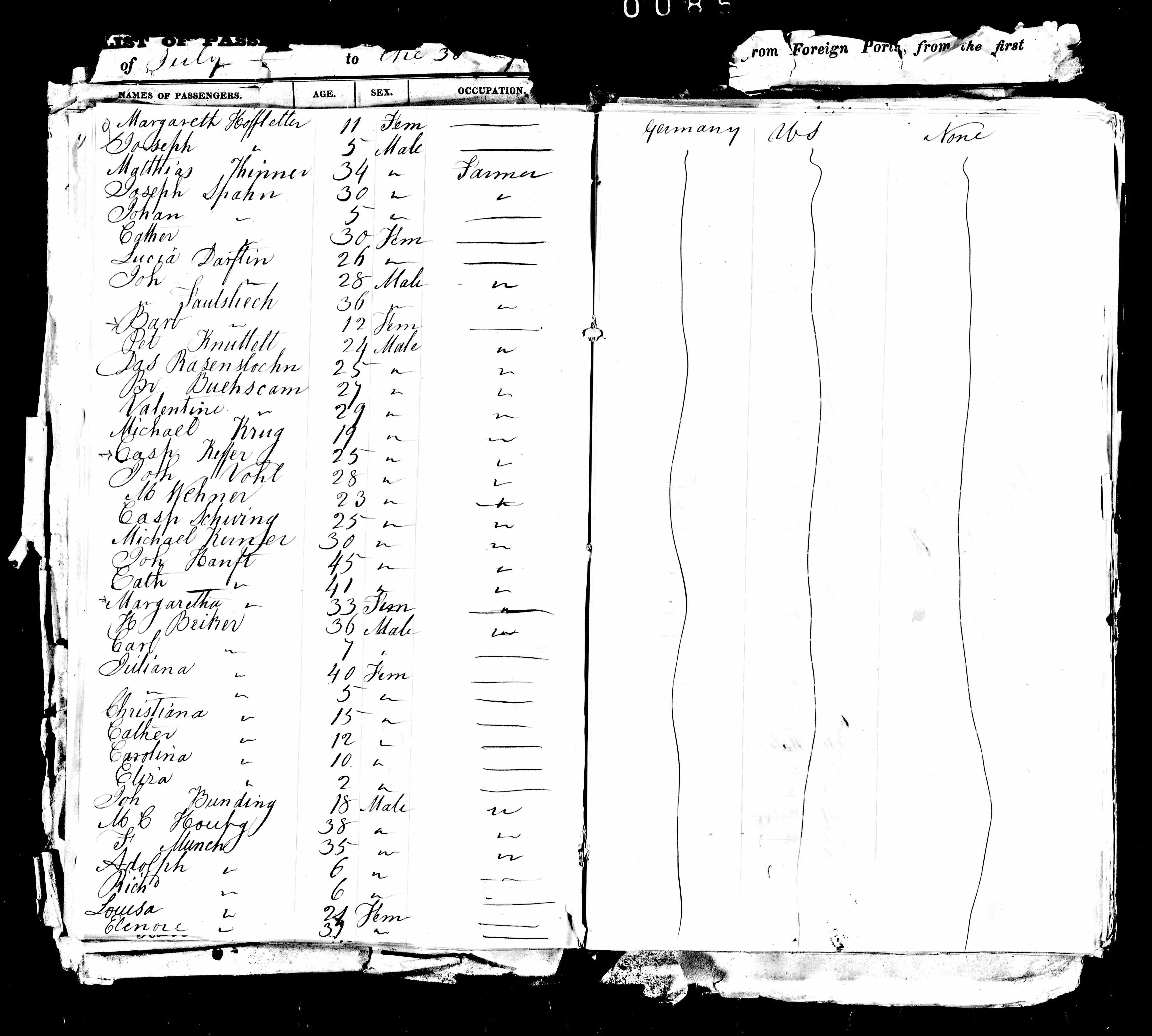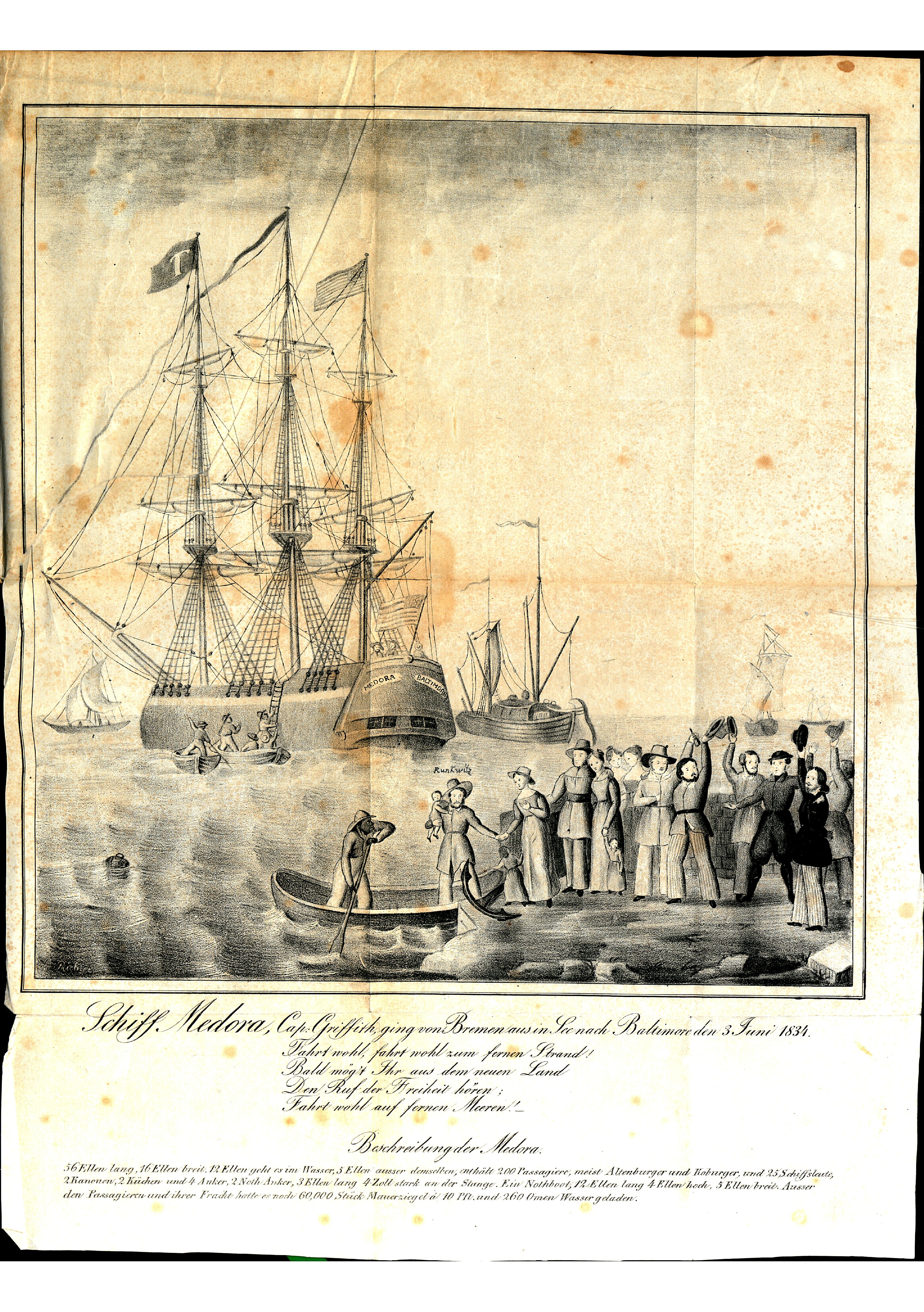 - Members of the Giessen Emigration Society who accompanied Paul Follenius sailed on the Olbers, which arrived in New Orleans on June 2, 1834; and the Medora, which arrived in Baltimore on July 24, 1834. These images are from the National Archives and Records Administration.